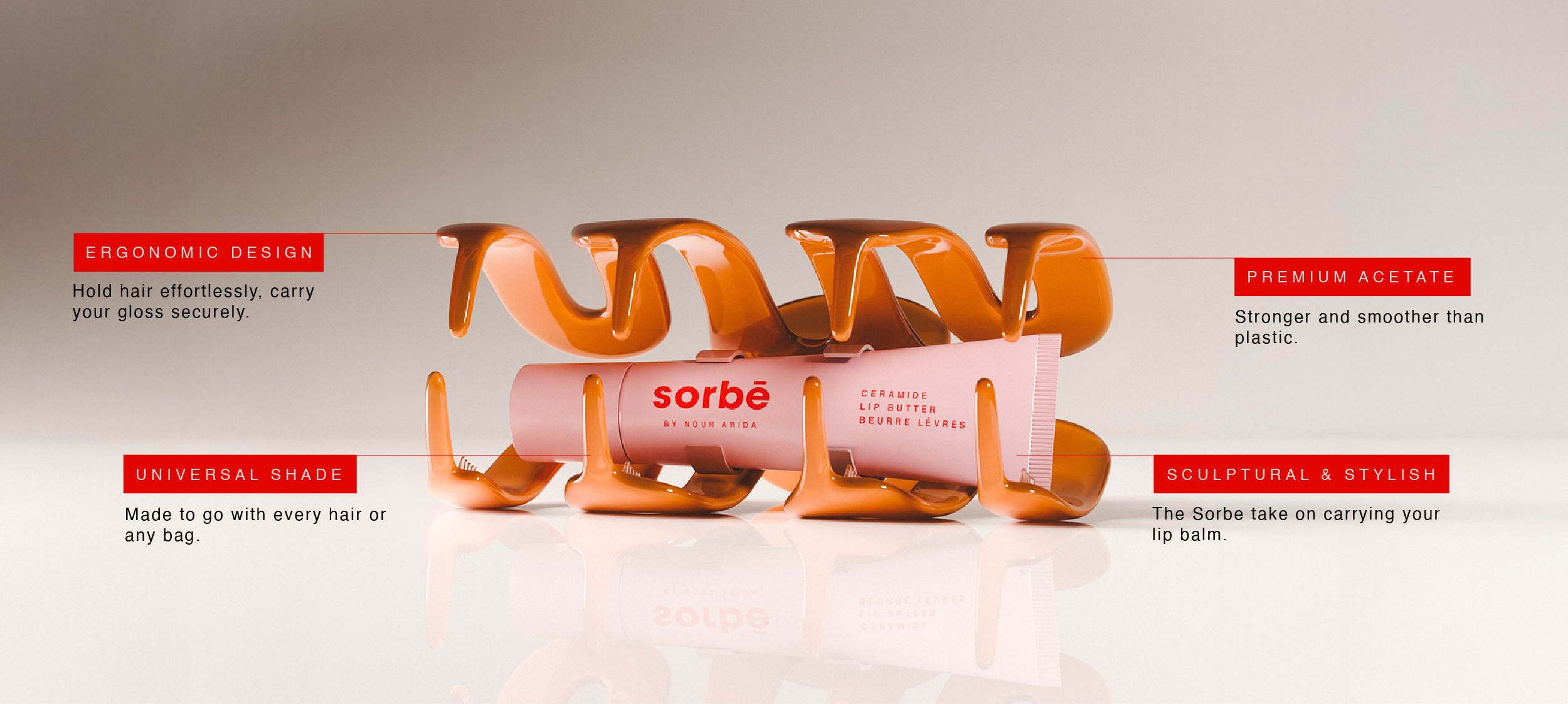 This shape, with an integrated ceramide lip butter holder, is designed to keep your hair in place, and your lips in check.